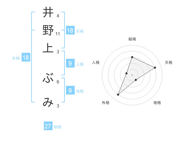 井野上 ぶみさんの総格は27画の3点!