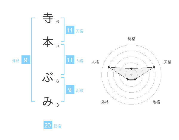 寺本 ぶみさんの総格は20画の1点!