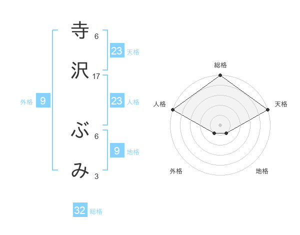 寺沢 ぶみさんを姓名の画数から五運を鑑定