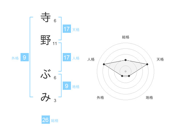 寺野 ぶみさんの総格は26画の2点!