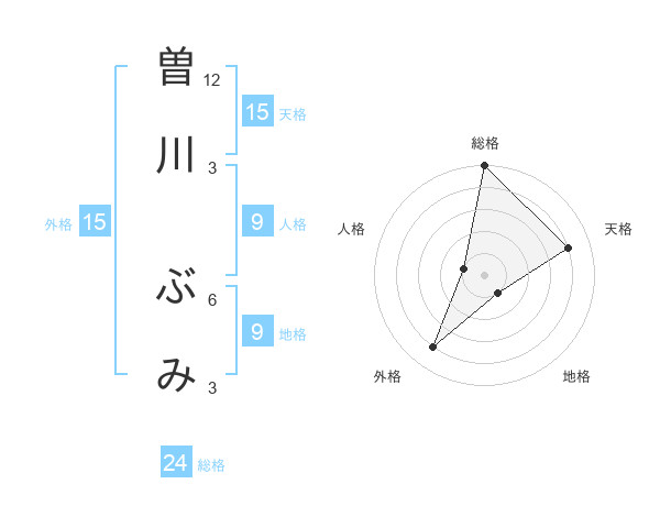 曽川 ぶみさんの総格は24画の5点!