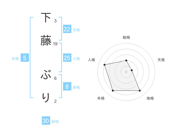 下藤 ぶりさんを姓名の画数から五運を鑑定