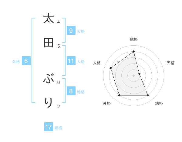 太田 ぶりさんの総格は17画の4点!