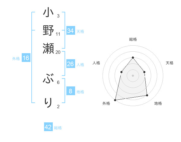 小野瀬 ぶりさんを姓名の画数から五運を鑑定
