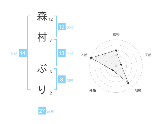 森村 ぶりさんを姓名の画数から五運を鑑定