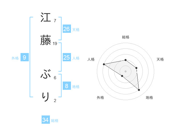 江藤 ぶりさんを姓名の画数から五運を鑑定