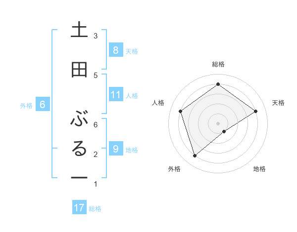 土田 ぶるーさんの総格は17画の4点!