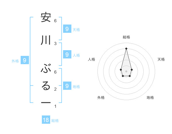 安川 ぶるーさんの地格は9画の1点!