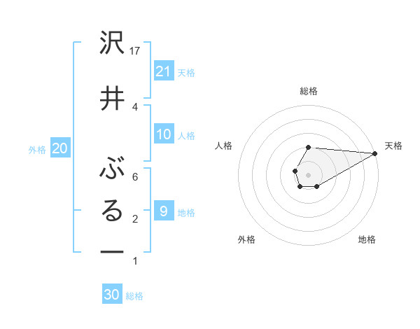 沢井 ぶるーさんを姓名の画数から五運を鑑定