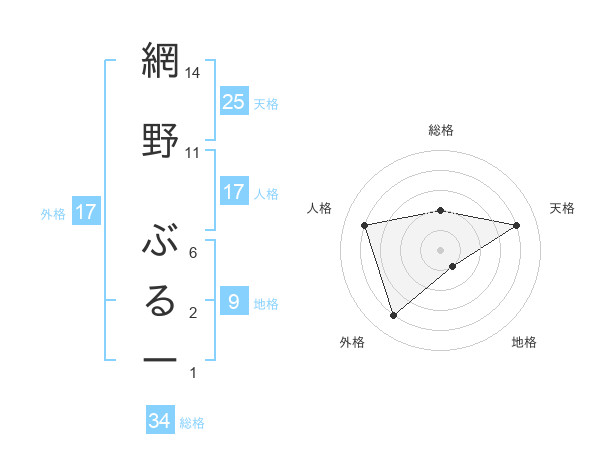 網野 ぶるーさんの総格は34画の2点