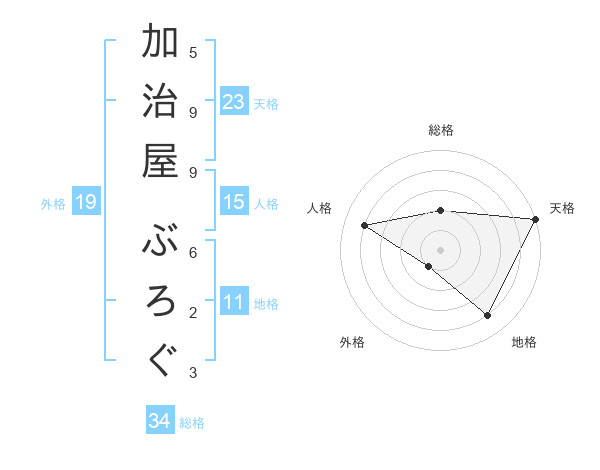 加治屋 ぶろぐさんを姓名の画数から五運を鑑定