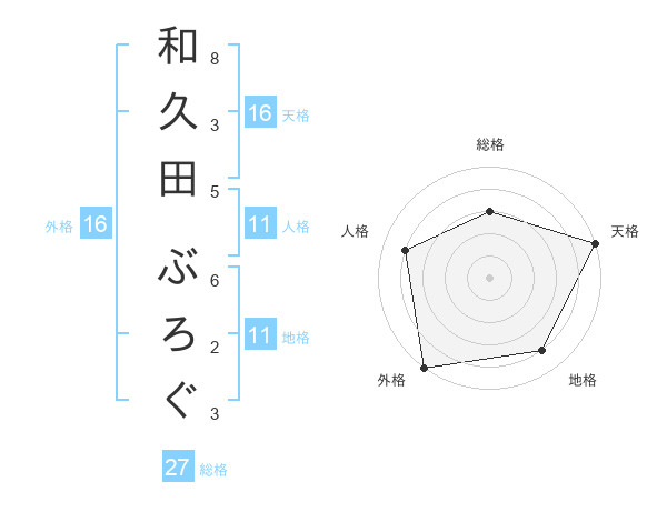 和久田 ぶろぐさんの外格は16画の5点!