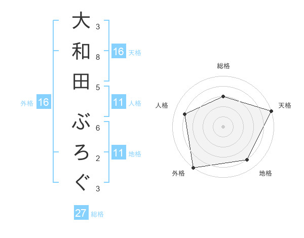 大和田 ぶろぐさんの総格は27画の3点!