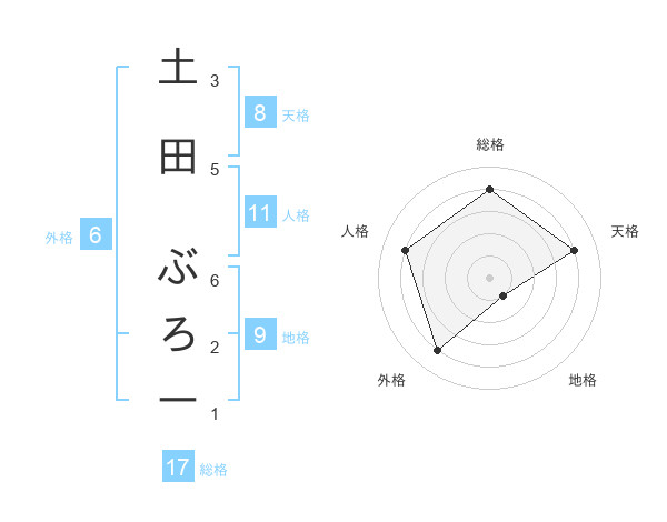土田 ぶろーさんを姓名の画数から五運を鑑定