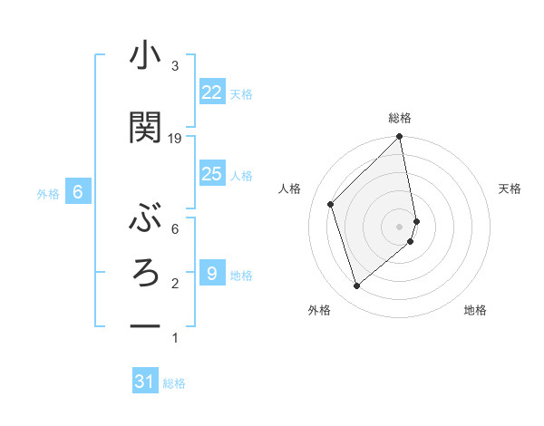 小関 ぶろーさんの総格は31画の5点!