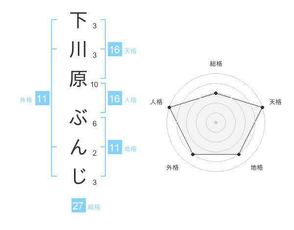 下川原 ぶんじさんの人格は16画の5点!