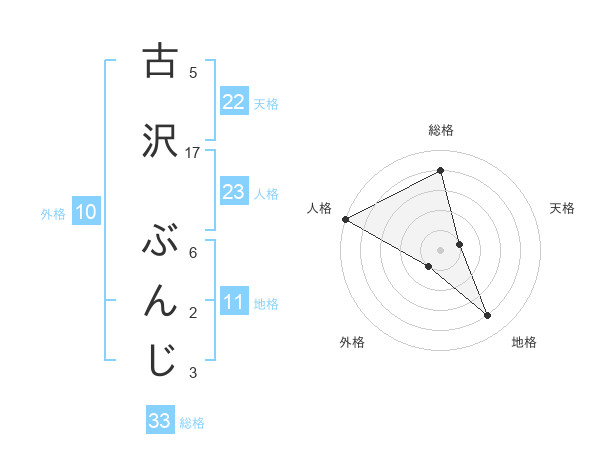 古沢 ぶんじさんを姓名の画数から五運を鑑定