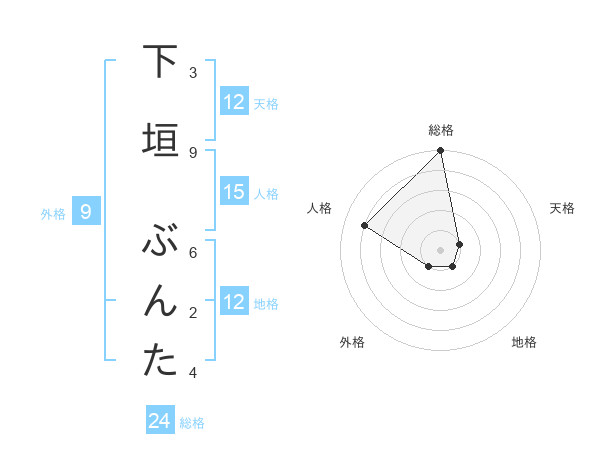 下垣 ぶんたさんの総格は24画の5点!