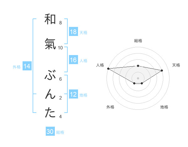 和氣 ぶんたさんを姓名の画数から五運を鑑定