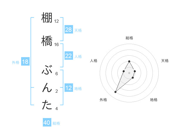 棚橋 ぶんたさんを姓名の画数から五運を鑑定