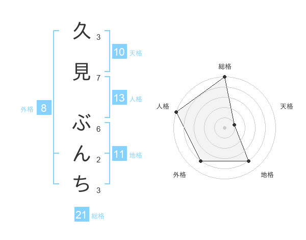 久見 ぶんちさんの総格は21画の5点!