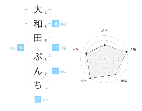 大和田 ぶんちさんを姓名の画数から五運を鑑定