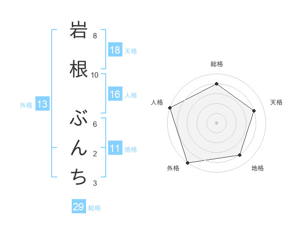 岩根 ぶんちさんを姓名の画数から五運を鑑定