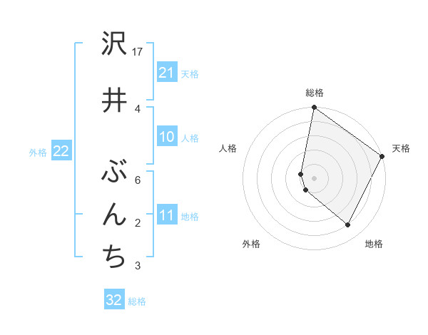 沢井 ぶんちさんを姓名の画数から五運を鑑定