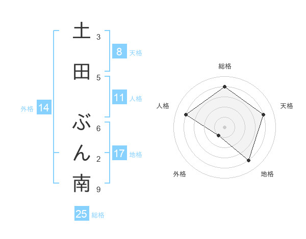 土田 ぶん南さんを姓名の画数から五運を鑑定