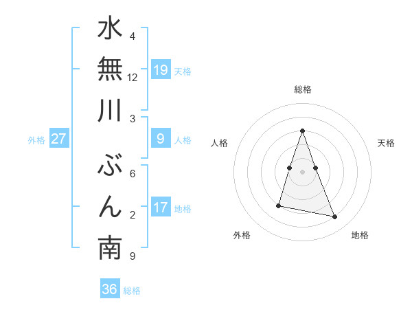 水無川 ぶん南さんの外格は27画の3点!