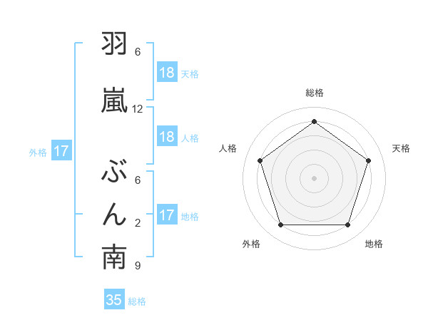 羽嵐 ぶん南さんの総格は35画の4点!