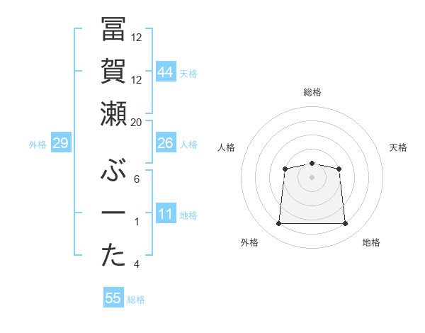 冨賀瀬 ぶーたさんの天格は44画の2点!