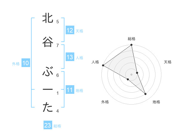 北谷 ぶーたさんを姓名の画数から五運を鑑定