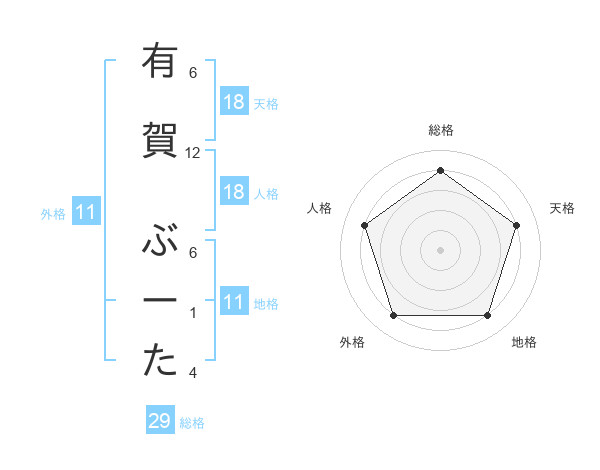 有賀 ぶーたさんを姓名の画数から五運を鑑定