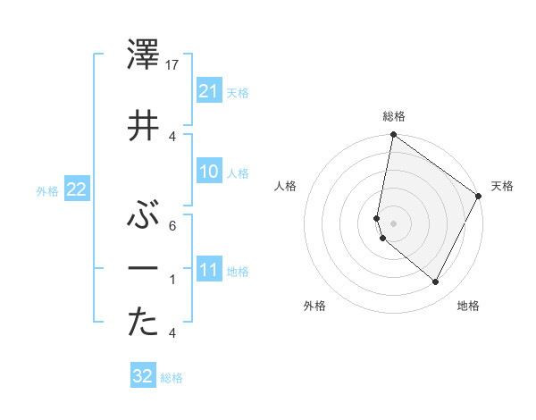 澤井 ぶーたさんを姓名の画数から五運を鑑定
