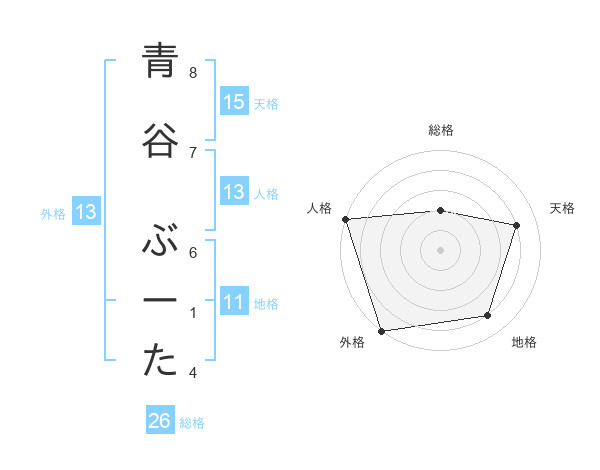 青谷 ぶーたさんを姓名の画数から五運を鑑定