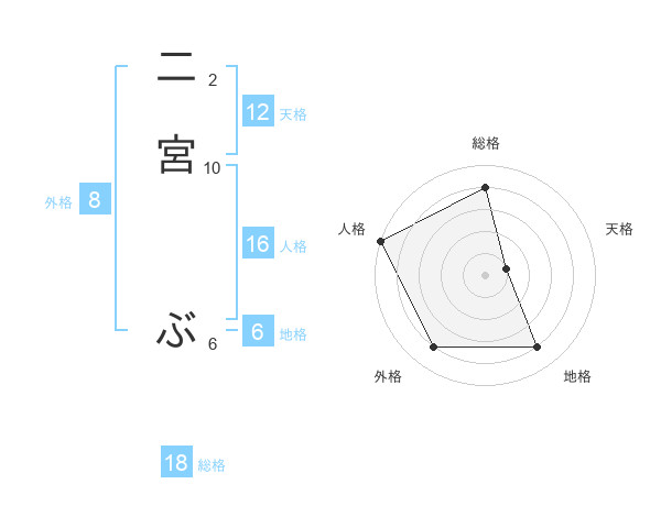 二宮 ぶさんの総格は18画の4点!