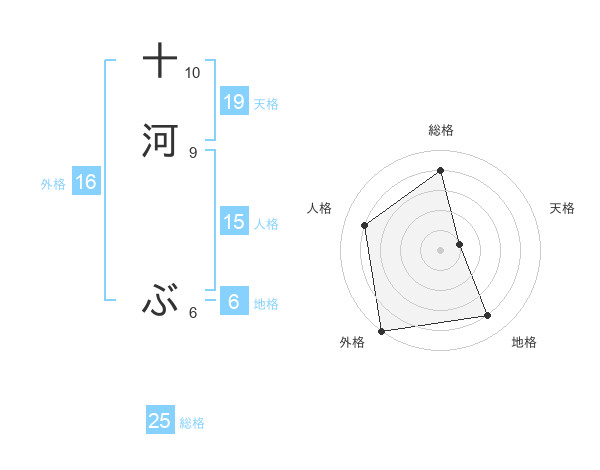 十河 ぶさんの外格は16画の5点!