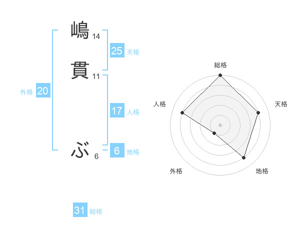 嶋貫 ぶさんを姓名の画数から五運を鑑定