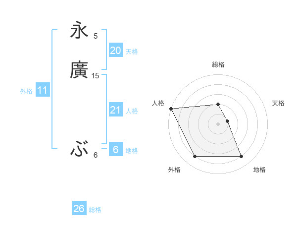 永廣 ぶさんを姓名の画数から五運を鑑定