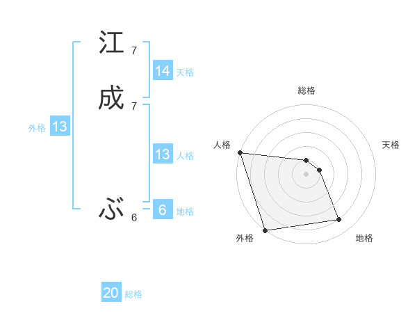 江成 ぶさんの外格は13画の5点!