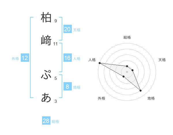 柏﨑 ぷあさんの総格は28画の1点!