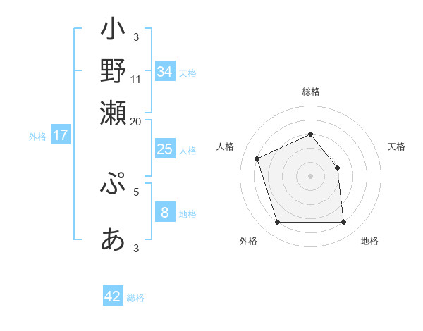 小野瀬 ぷあさんの外格は17画の4点!