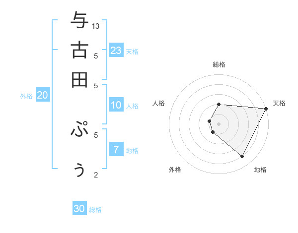 与古田 ぷぅさんを姓名の画数から五運を鑑定