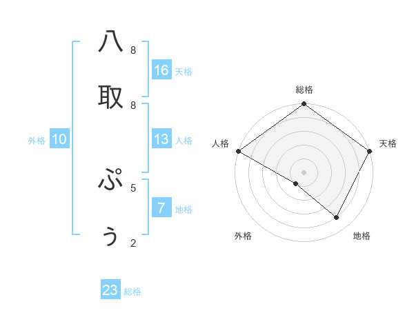八取 ぷぅさんの総格は23画の5点!