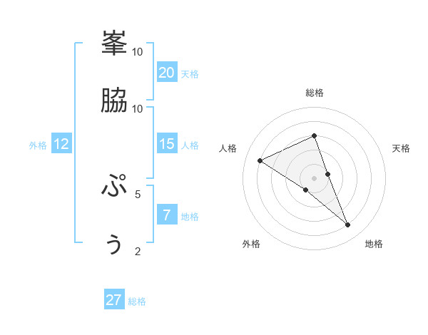 峯脇 ぷぅさんの総格は27画の3点!