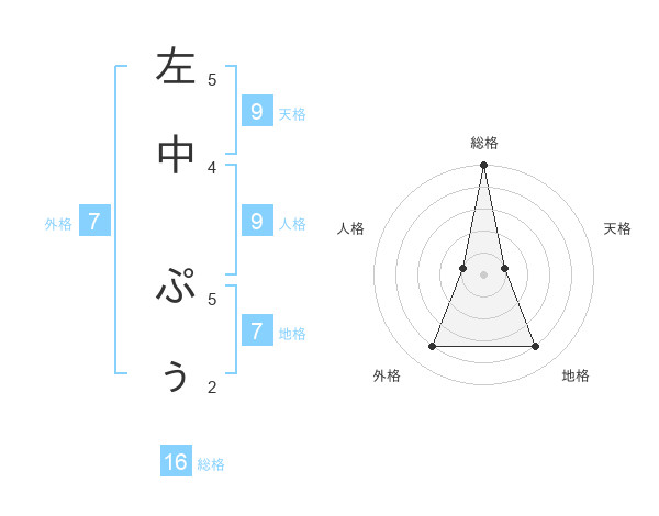 左中 ぷぅさんの総格は16画の5点!