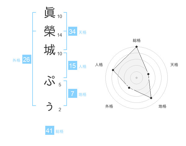 眞榮城 ぷぅさんを姓名の画数から五運を鑑定
