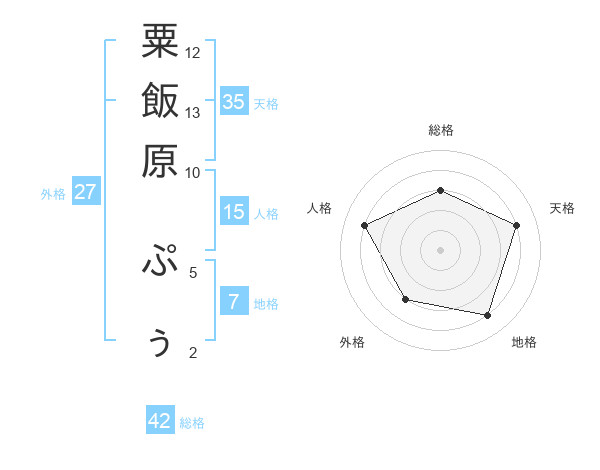 粟飯原 ぷぅさんを姓名の画数から五運を鑑定