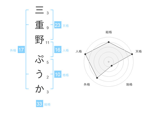 三重野 ぷうかさんの天格は23画の5点!